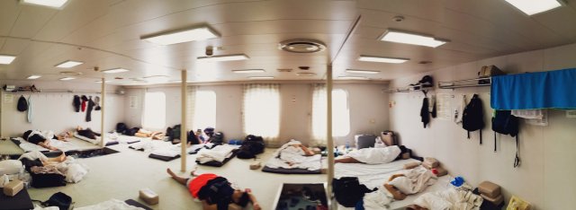 The boat is full of interesting characters. Rafael pointed out this is because everyone sane takes the plane. The most noticeable is a Chinese guy who always wears a gas mask and carries a huge rucksack everywhere he goes onboard. Chenyi asked him about it and apparently its for religious reasons. He keeps coming to me with 2 compasses pointing in different directions asking which way we’re going. The American is also a character. Me and Rafael both agreed he reminds us of The 100 Year Old Man Who Climbed Out of the Window and Disappeared. He has tales from seemingly every country.
