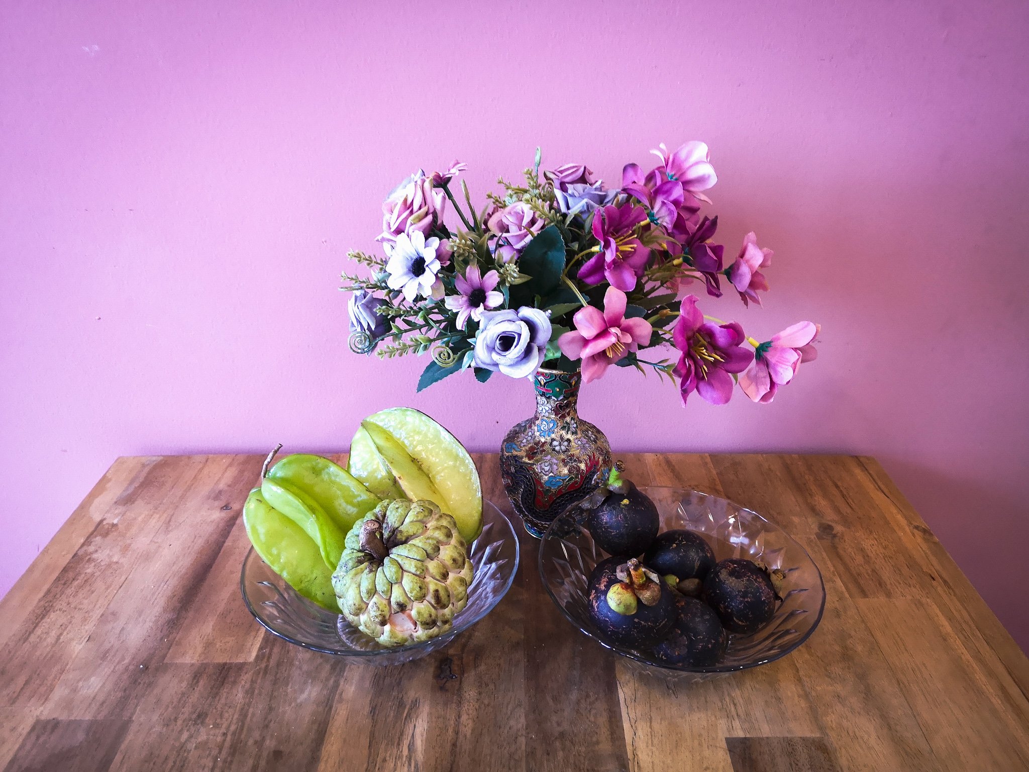 I’ve been making the most of a nearby market to try all sorts of fruit I’d never heard of before! There are pomelos, starfruits, soursops, sweetsops, mangosteens and even more I haven’t learned the name of yet. The Vietnamese like to eat their fresh fruit with chilli-salt, a habit I can’t get used to myself!