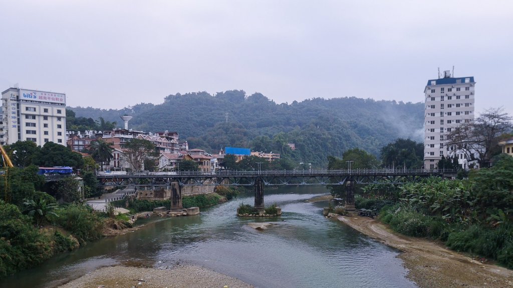 I’ve always imagined there’s a certain romance to crossing a border on foot. Leaving one countries soil to set foot on another without a plane or boat in between. After getting off my the morning train from Kunming, I took a taxi to the border. I was confronted by a huge queue, several hundred meters long! But I realised this was for goods to declare and people with nothing to declare could skip this queue entirely. The building was not entirely dissimilar to an airport or the ferry terminal in Shanghai. However queuing at passport control which was a nightmare! People were pushing and shoving and the chinese staff did nothing to control it. Eventually I got to a counter and was given the worst interrogation of my life: about why I’d been in china and what my business was in Vietnam. After that I was out onto the bridge. The bridge is a couple of hundred meters long. One side is china and the other vietnam. There was a steady stream of people going each way.