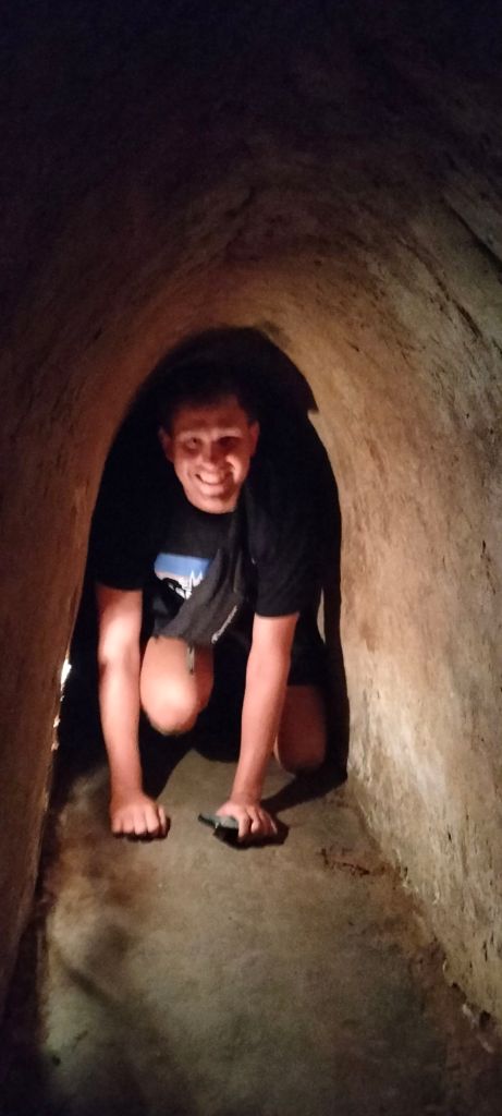 Our Saturday morning adventure took me Henry and Grace to the small town of Cu Chi just beyond the reaches of Saigon, where the echoes of the war still linger in the air. Apparently Cu Chi was a strategic hotspot nestled between Saigon and the Cambodian border that had a large American presence and unknown to them, a huge network of Viet Cong tunnels right below them.