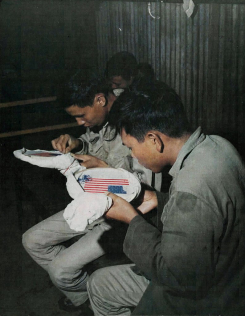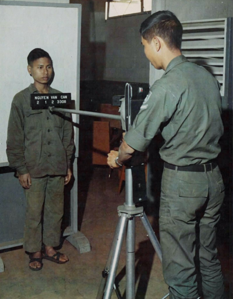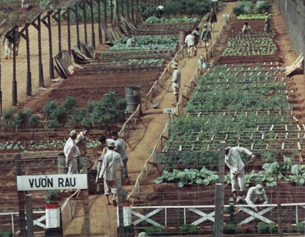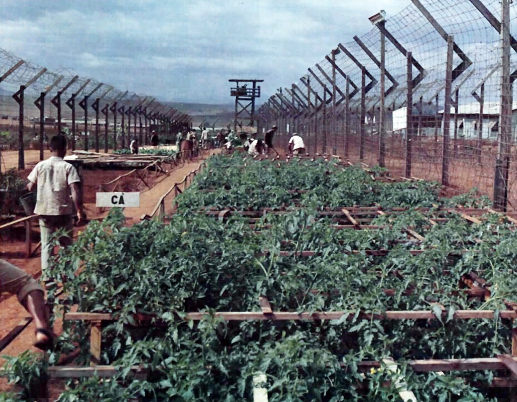 source: fold3.com – Nov 14, 1968. A POW gets measured in height by a Quan Canh (ARVN Military Policeman) with a measuring pole at the processing building of the POW camp.source: fold3.com – Nov 14, 1968. A POW is photographed for identification purposes by a QuanCanh (ARVN Military Policeman) at the Processing building of the POW camp.source: fold3.com – Nov 14, 1968. POWs work in the garden raising crops to be used in the mess hall at the POW camp.source: fold3.com – Nov 14, 1968. A POW paints a combat type picture in oils as he relaxes at the POW camp.source: fold3.com – Nov 14, 1968. POWs clean up the display area, which includes a model village built by the prisoners, as part of the camp beautification program.source: fold3.com – Nov 14, 1968. POW’s work in their garden at the POW camp.source: fold3.com – Nov 14, 1968. POW’s do embroidery work for relaxation at the POW camp. Tù binh thêu thùa để thư giãn tại Trại tù binh chiến tranh Pleiku.striking photo of guard looking out over the camp, the distinctive shape of Chu Nam mountain in the backgroundCamp d’internement de Pleiku. Activités des prisonniers de guerre communistes vietnamiens, jardin potager. 20th or 21st January, 1972sourceCamp d’internement de Pleiku. Activités des prisonniers de guerre communistes vietnamiens, jardin potager. 20th or 21st January, 1972sourceCamp d’internement de Pleiku. Activités des prisonniers de guerre communistes vietnamiens, jardin potager. 20th or 21st January, 1972source