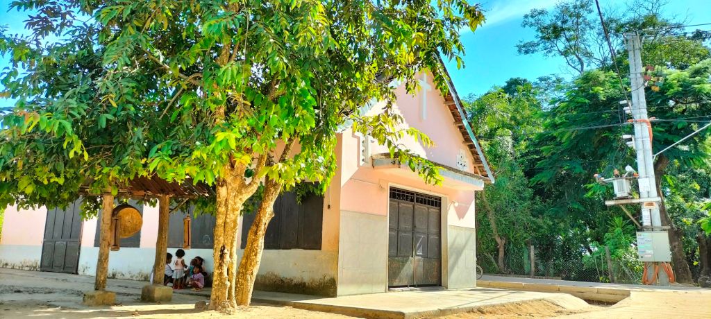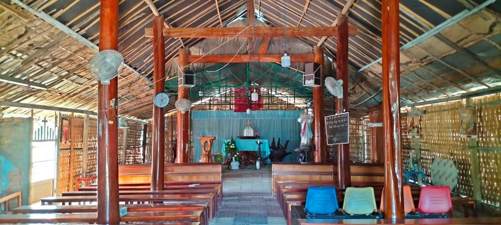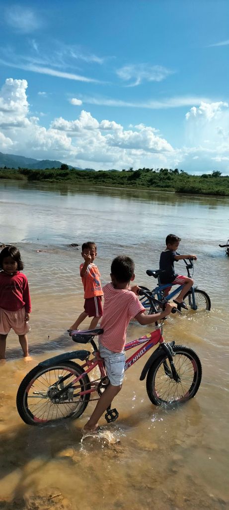 I visited the village center, where a rong house provided shade for a small vegetable market beneath, next to it was the dignified structure of a squat chapel standing quietly in the afternoon sun. The villagers, kind and welcoming though they were, seemed baffled by my questions. The name Guerlach drew blank stares, and no one knew of any historical missionary. It was disheartening but not entirely surprising; so much has changed in this area over the years. Giving up on my research, I decided to make the most of the sunny afternoon and wandered down to the river, the children trailing along behind me. They entertained themselves by showing off their English, each proudly declaring, “My name is…” followed by whatever made them laugh: “My name is Spiderman,” “My name is Ronaldo.” I recognized this game from my volunteer teaching days, so I joined in with, “My name is Hla Blang!”—a local cassava leaf dish. The kids burst into raucous laughter, delighted by my attempt, and I knew I’d won them over.