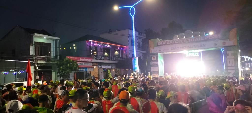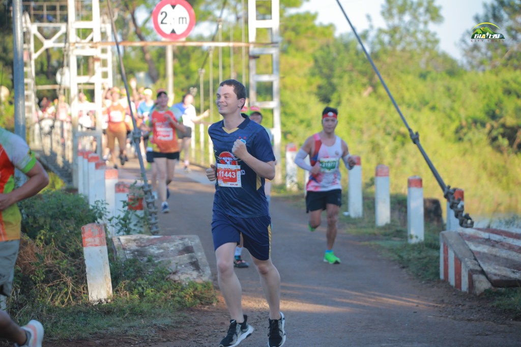 As the starting countdown ends, the mass of runners moves forward like honey dripping off a spoon—slow at first then spreading out as it gains momentum. In my effort to show appreciation for the local area, I’d chosen to wear the HAGL football team kit—Gia Lai’s pride. It’s my small way of connecting with this place that’s become home. The first corner hosts a Jrai band playing traditional music. I know these musicians from Pleiku Roh; they spot me, shouting and waving as I pass. Their cheers make me grin—a moment of connection that reminds me why I love living in Pleiku.