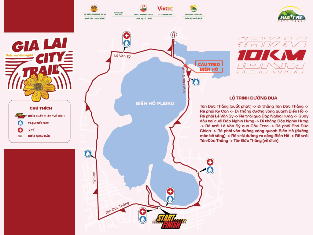 The 10k route encircles Biển Hồ lake – the “Sea Lake” of Gia Lai province, a popular tourist attraction. We set off clockwise, taking us first past its iconic pine trees. The lake itself is a remnant of volcanic activity, formed by overlapping craters, it covers and area of 228 hectares and conveniently for today, a lap around is about 10km.