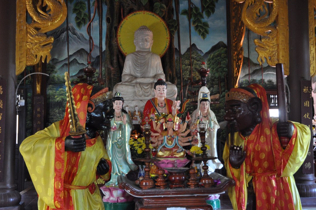 Archaeological finds from the site tell other stories: local pottery fragments, roof tiles, and lion statues. A number of relics are now on display at the Bình Định Museum in Quy Nhơn, while a pair of dvarapalas (buddhist gate guardians) are enshrined at a nearby pagoda, venerated by the locals to this day and having many folk stories surrounding them. I went to see them on my second visit to the area and was amazed by how large they are, they are tall and weight 800kg are quite intimidating.