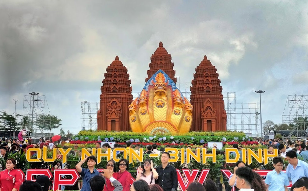 My trip that spring had begun with a jaunt down to the seaside accompanied by Emma — an old friend, fellow Brit and wonderful mentor from my English teaching days in Pleiku. This time, she had journeyed from Kuwait to catch up with old faces and get some vitamin sea before heading back to England. We’d spent Tết together in the picturesque cove of Bãi Xép, near Quy Nhơn city. Fittingly for this story, the city was decked out in Champa-themed decorations for the Year of the Snake, blending local history with the Chinese zodiac. On New Year’s Eve, we ambled down to the beach to watch the fireworks bloom over the distant city dancing on the waves. Some village children dashed about with firecrackers, their shouts mingling with the bangs, maybe to summon luck for the year ahead.
