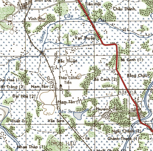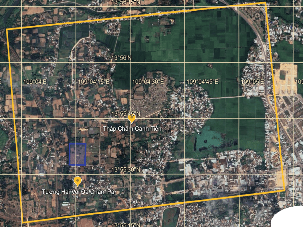 Only later did I learn that this tidy little visitor site is but a postage stamp compared to the original citadel. The ancient stronghold of Vijaya once sprawled across an area of more than three hundred hectares – nearly twice the size of Huế Citadel. A French archaeologist sketched it a century ago, American topographical maps caught it again during the war, and now, with the powers of satellite imagery, I’ve traced its rough outline on Google Earth. As it turns out, that Cham tower, not the flagpole, was the centre point of the original citadel. (source)