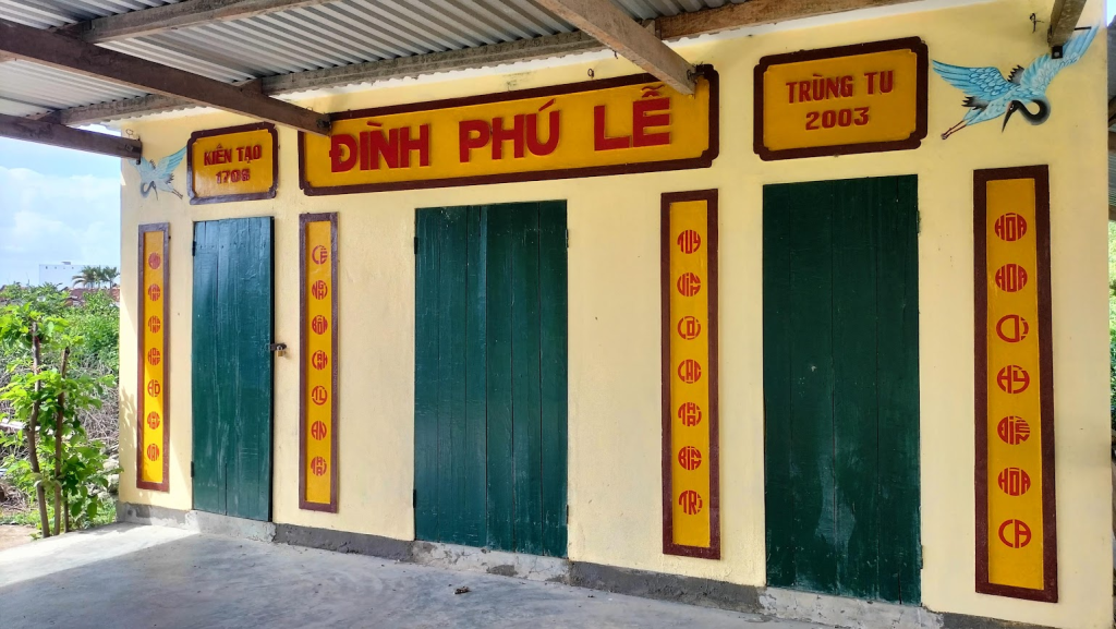 Phú Lễ communal house was established in 1708 (maps). It is in the village of Phú Lễ near Phú Lâm, with an entrance squeezed behind a local school. There, they worship a water god and store some interesting royal decrees. (source)