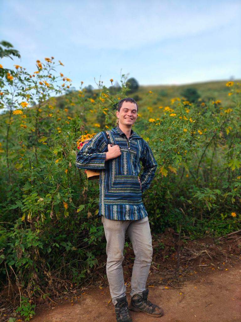 “Teacher Will!” a small voice calls out. I turn and scan the bustling crowd to see a group of my former students grinning and waving yellow flowers, dressed in striking black Jrai clothes with intricate brocaded trim. They’re selling dã quỳ wreaths, made from the bright yellow tithonia diversifolia flowers. The occasion? The annual Chu Dang Ya Flower Festival. Established in 2017 (source), this festival draws visitors from across Vietnam to witness the mountainsides bloom in early November, at the end of the rainy season.