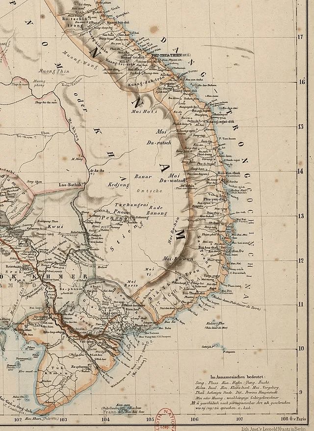 Like many modern conmen, Mayréna had a sixth sense for turning political turmoil to his financial advantage. Acting quickly; he petitioning the Governor-General to let him intercept the Prussians. The official rebuffed him, due to diplomatic concerns. Undeterred, he quickly reshaped his proposal and offered to lead an unofficial expedition into the highlands west of Annam’s Binh Dinh province. His objective was to secure treaties with the local chiefs before the Prussians could. This time, the Governor-General approved his plan.