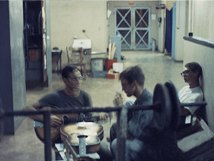 At the time the pirate radio was on the air – 1971 – the Vietnam War still had a good four years to go, but for the U.S. Army, things were beginning to wind down. Under the policy of “Vietnamization,” introduced by President Nixon, the U.S. was gradually transferring the responsibility of the war to South Vietnamese forces, aiming to reduce American involvement. The 71st Evac Hospital had reduced their staff considerably, giving the buildings that were no longer used over to the Signal Corps. The area had an eerie liminal quality that was captured in photographs by Joel Dinda who was with the Signal Corps and living in the Hospital grounds. The atmosphere of these photos brings to my mind the style of Wes Anderson film, which I also find a fun lens through which to think about the story around the pirate radio station.