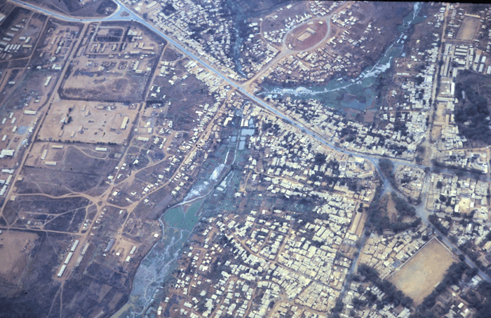 Areal view of Hoi Phu stream. Hoi Phu village on the left and Pleiku City on the right. Unknown year