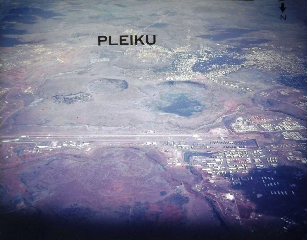 Map of Pleiku from 1968Pleiku Airbase is running across the middle of this picture, looking south. You can see a dark green triangle which is in the middle of the map. The green blob on the far right is Plei Roh at the top left of the map, thenyou can make out the built up area in between